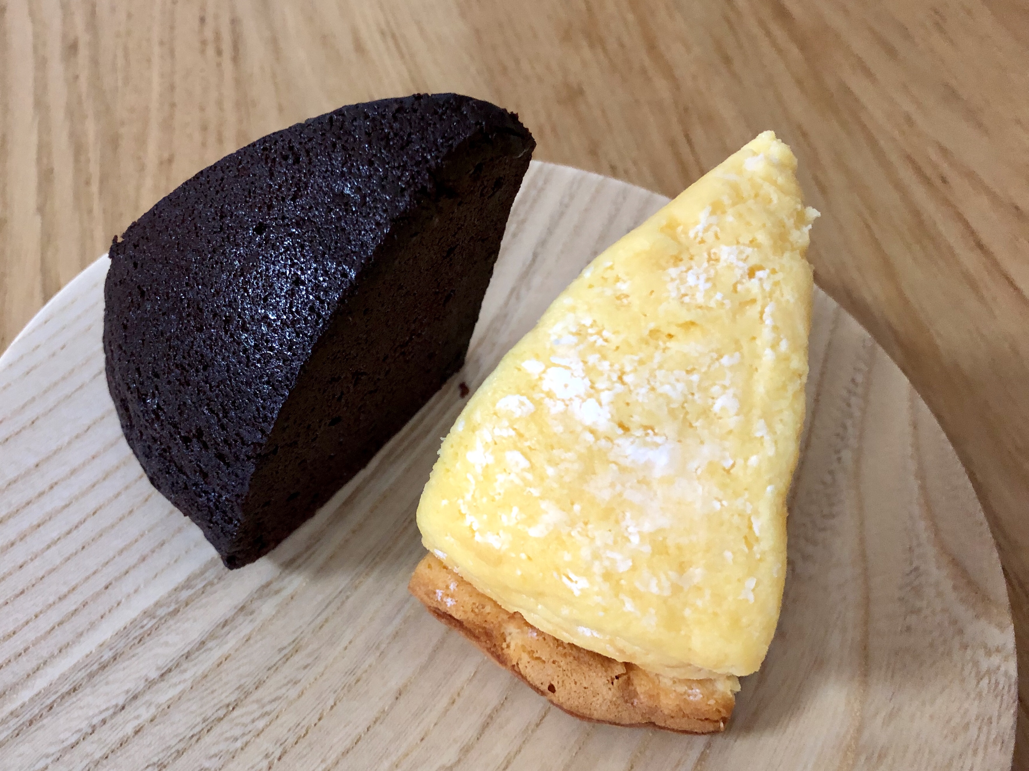 黒い方が「ショコラズコット」、黄色い方が「チーズズコット」です。「ズコット」なんて初めて聞きましたが、イタリア発祥でドーム型のケーキのことを言うんだそうです。